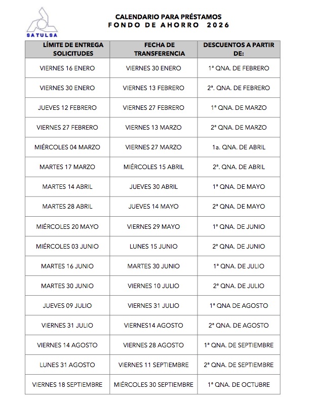 Solicitamos apegarse a las fechas establecidas en el calendario de Préstamos para enviar su solicitud, de lo contrario, no estaremos en posibilidad de darle trámite.